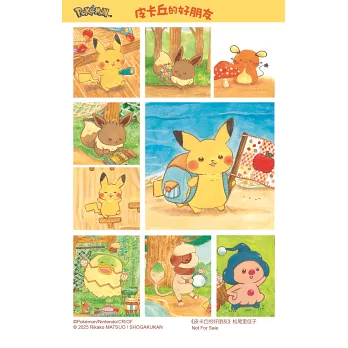 5. 套書內容包含:2本繪本《皮卡丘的好朋友》、《皮卡丘的夜晚大冒險》,以及贈品「皮卡丘與好朋友貼紙」(10x15cm)、「冒險時刻卡片貼紙」(8.5x5.4cm)