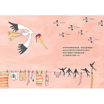 但是,總也有那麼一隻鸛鳥不是照著這個路線直飛的。這隻不直飛的鸛鳥會停下來看看四周的風景,有時迷路了,也會想辦法找到回去的路。他會問路,請求幫助,當然這樣又會耽擱一點時間。問的對象是不是真的認得路,有時也是個問題。但無妨,他會仔細研究新的路線。向右飛,向左飛,上飛,下飛,四處環繞著世界飛。最終,這隻多繞了點路的鸛鳥也會到達目的地。於是我們知道有些鸛鳥是直直飛過去的。但是,有某些鸛鳥是沿路看風景、飛過全世界每個角落才到的。