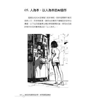 本書的圖片大多是結合手繪、繪圖軟體與生成式AI協作完成的,在「作品案例」篇則有部分圖畫與建築圖為人工繪製。