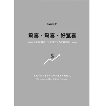 如果你抱持著懷疑態度,我會說:「太棒了!」如果你相信華爾街拋給你的每一則故事,你就不可能成為一名成功的投資者。但是親愛的投資者,相信我:「儘管我可能會使用有趣的類比,但這本小書中逐頁列出的致富策略絕非童話故事。」