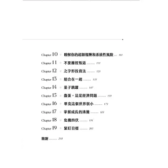 他在書中還煞費苦心地討論:追求卓越報酬的同時該如何降低風險,並針對大家經常談論卻常遭到誤解的術語「系統性風險」(beta)和「超額報酬」(alpha),進行一段令人大開眼界的探討。