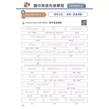 上課前預習單字(看懂音標),上課時聽的懂,就如同正在複習;課後作業就是再複習(共三次)。學習英語變得輕鬆愉快。(A Piece of Cake!)
