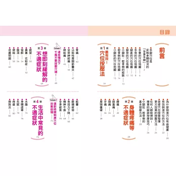 針對不同症狀提供對應穴位圖與手法,操作不複雜,人人都能立刻上手。