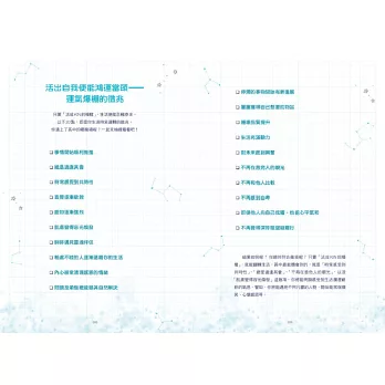 這是一本引導你在「綻放自我的時代」中更加活出自我、活得更為輕鬆的指南手冊,希望這本書能對你有所啟發。