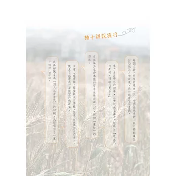 這不是一本旅行指南,而是一場回到內在的返鄉之旅,是讓人透過旅途看見自己、找回安全感與自由感的生命筆記。在柚子的字裡行間,我看見旅行成為一種覺察的修行。身為整理師與財務規劃師,我深深共鳴於她讓「內在富足」走在物質之前的智慧與溫柔。 ——《財富自由的整理鍊金術》作者 整理鍊金術師小印