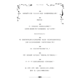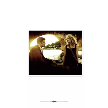 李察起初邀我一起寫個「男孩遇到女孩」的故事,我心裡只有一個清楚的期望,就是故事要對人與人的連結懷抱著樂觀和希望,但又不是那種「從此過著幸福快樂的生活」的糖衣式陳腔濫調。憤世嫉俗很廉價,既安全又輕鬆。我們可能超越這樣的態度嗎?這一點光用想的似乎就充滿危險。我和李察撰寫《愛在黎明破曉時》期間,有過許多次不可思議的對話。我們會先拼出情節(有人會說那不叫情節,我會說那是「內心戲」),然後輪流在電腦上用文字唇槍舌戰。我們跟伊森和茱莉第一次見面,可以用親密感訓練營來形容。四個人針對男女之間的事情你來我往,吵得非常痛快,感覺就像吃了瀉藥後那般舒暢。