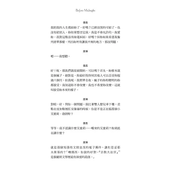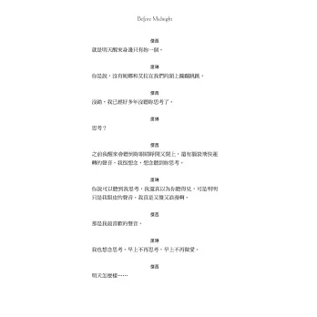 ◆首創男譯者翻譯傑西,女譯者翻譯席琳,精準掌握角色性格,再現經典銀幕情侶雋永對白!