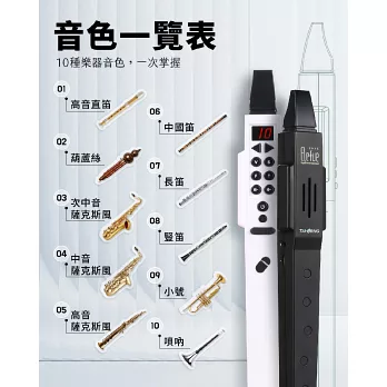 ✦ 內建 10 種不同的音色(豎笛、長笛、薩克斯風、小號……)