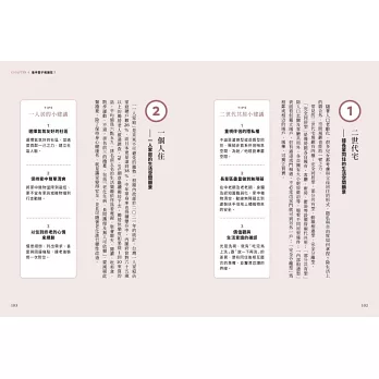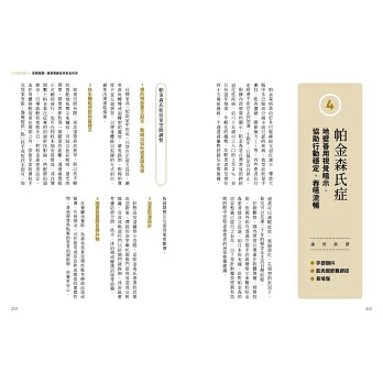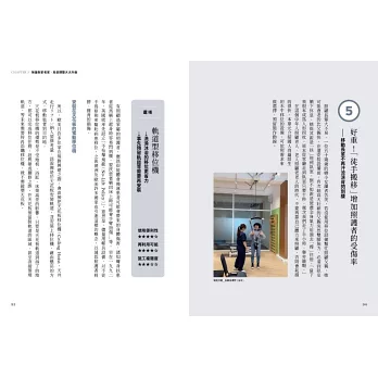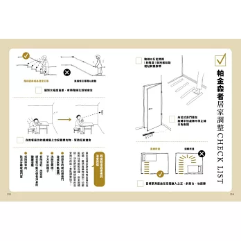 除一般老化之外,失智症、老年憂鬱以及腦中風,都會與居家空間環境產生直接會間接的關係,失智症者不適合隨便搬家,陌生環境常會使失智症者加速惡襪。而腦中風者的居家環境,更需依照患者本身的患部與症狀來設計。書中以手繪插圖的形式,依照不同的病症,一目瞭然地提供空間微調整建議。