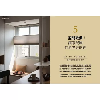 讓家照顧自然老去的你……只要預先準備,就能好好地、舒適的在自家空間愉悅的生活,甚至可以讓家空間,支持我們在宅終老,安然走完人生最後一哩路。