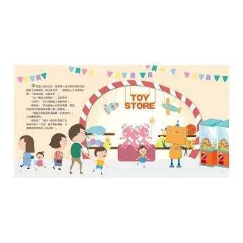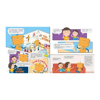 今天是小波的生日,爸媽帶小波和莉莉到玩具店,要幫小波買禮物。剛走進店裡,一個機器人立刻揮揮手,說:「歡迎光臨,我是派奇。」