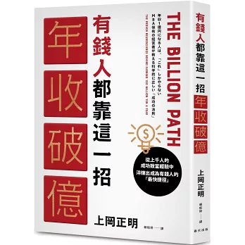 本書由擁有MBA學位的企業家,將「符合腦科學的成功法則」整理成34個步驟,傾囊相授。作者分析了約1000位頂尖企業家、經營者與運動選手的行動模式,並構築出一套人人都能朝「年收入一億日圓」邁進的實踐流程。