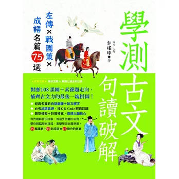 古文解譯後面收錄了近年學測相關題型,從閱讀理解、語詞判斷到成語運用,一次到位,化「讀懂」為「寫對」,補齊學測國文的致命弱點!