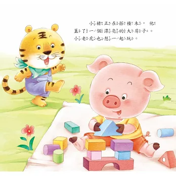 小老虎的力氣好大,不但把小豬的積木推倒,