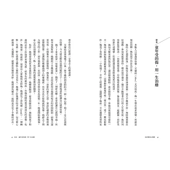 本書就是你專屬的心理師,從改變自我、改善親密關係,到建立人際連結的種種人生難題,陪你依循探索、認識、感受、採取行動、反覆實行等五步驟,深入內心的內在小孩,包括: