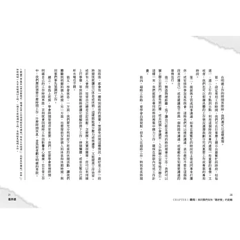 全書共分五章,分別從職場、情侶、朋友、親子、夫妻等五大面向講述邊界感的重要性,每一章都從最常見的故事、案例入手,帶領讀者如何與上述五種常見的人際關係建立應有的邊界,保持最舒服的距離。此外,作者提供最適合的觀點,幫助讀者在與不同的人相處時建立邊界感,規範自己的言行舉止,同時也保護自己免受他人侵犯,絕對是一本可讀性非常強,也深具實用性的好書。