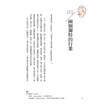 透過真實案例和經驗,揭露這門鮮為人知小眾行業的工作內容,一萬小時的實習到開業的漫長過程中,除了了解疾病外,還要懂解剖學和手做藝術的功力。