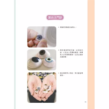 ◎在台灣極其罕見的職業,收錄了義眼、義鼻,和義耳等製作流程、材質、保養、清潔等指引,搭配作者和攝影師精心拍攝的照片。