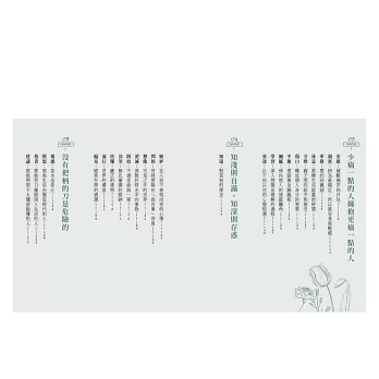 ★本書以熟悉親切的日常詞彙為起點,進一步探索生活的意義,涵蓋了生活中普遍面對的情感與事件,每一則讀起來都有共鳴!