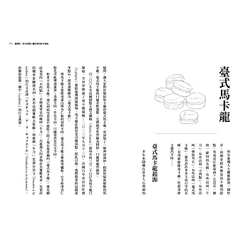 終於我鼓起勇氣寫下了我看到的臺灣糕點,一步一腳印,我拚命想紀錄那些快要被歷史洪流淹沒的曾經。我以為文字永遠只能記錄它們的形貌,當味道成就為記憶,它就不僅僅只是食物,我們會定格一切的點點滴滴。因此,我想為下一代的人寫下這一本書,告訴他們我們為什麼必須要記得。