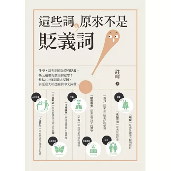 作者盤點了108個有趣的中文詞彙,詳述它們從褒義詞或中性詞轉為貶義詞的演變過程,彷彿是一部漢字演化的歷史紀錄片。原來,語言文字是活的,會隨著文明發展而不斷演化。學會這些,又多了很多有趣又有用的國學常識。