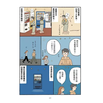 作者以夜晚的回憶與在夜晚經歷過的美好人事物,編織出一個個面貌迥異的夜晚。一起唱卡拉OK的同事、深夜加班時的宵夜、冬令營睡不著時陪著聊天的朋友、在無人的自助洗衣店發呆、一個人的大人味酒吧……