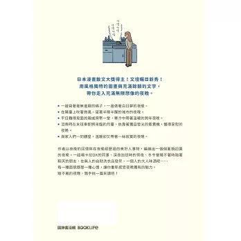 ★日本漫畫散文大獎得主!文壇矚目新秀!用風格獨特的圖畫與充滿餘韻的文字,帶你走入充滿無限想像的夜晚。
