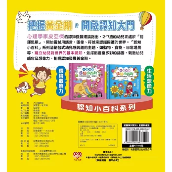 《中英雙語認知小百科 幼兒階段發展前運思期──感官專注力》透過豐富有趣的雙語認知學習,孩子在玩樂中培養邏輯思考與語言能力,增強自信與學習興趣。無論是親子共讀、學前準備、還是中英雙語啟蒙,這本書都是最適合孩子的起點!