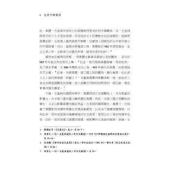 由於諸多因素,1992年我成為韓國研究團隊的逃兵。其一是當年南韓與中國大陸建交,和臺灣斷交,以及韓國國家意識抬頭,韓文盛行,增加溝通交流的困難,讓我的內心受到衝擊與震撼;其二是我聯繫學界同道,籌劃宋代家族與社會的國際合作計畫,已獲蔣經國基金會審查通過,研究工作亟需開展,加上學術服務的行政事務增多,不易抽出較長時間進行移地研究,遂決定告別中韓關係研究。此後,除了因應韓國研究熱潮,重新整理、編輯研究書目並綜合研究成果撰成回顧論文外,我未再觸及中韓關係的議題,因此本書所收論文都是二十五年前的舊作,其缺憾與不足是很明顯的,但這十餘年在個人學術成長上,是一段特殊的機遇,研究也有些許突破。因此願修訂舊稿,彙集成冊,既記述學習成長的歷程,也向同道請教。
