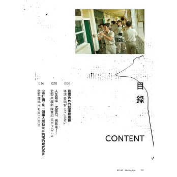 本書訪談創作團隊、劇組成員和三位主要演員,暢談製作過程的幕前幕後與甘苦心情,同時收錄劇中精彩劇照,再現電影籌備、拍攝過程,不僅呈現出高中行進管樂隊的活力和熱情,也記錄了電影製作團隊的浪漫與堅持。