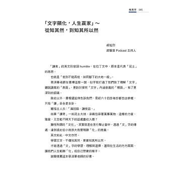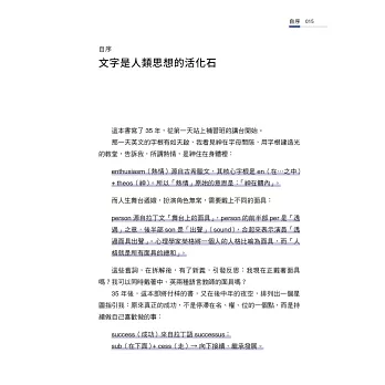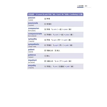 這本書既是字彙學習書,也是人生勵志散文,讓人從字彙形成的原由,體會到人情世故。