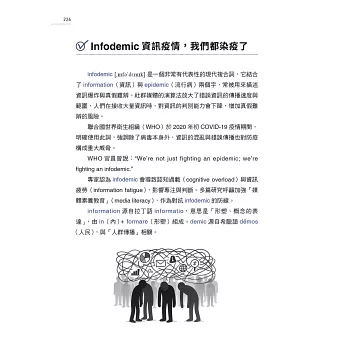 infodemic結合了information(資訊)與epidemic(流行病)兩個字,常被用來描述資訊爆炸與真假難辨。