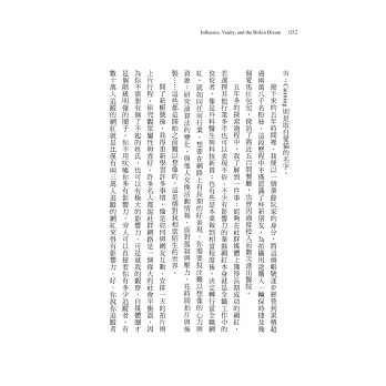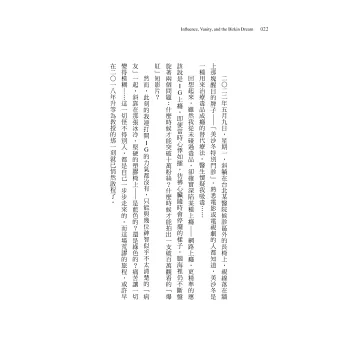 這本書是她經營自媒體五年的經過:看似華麗的實驗,實則充滿對現代生活的洞察。她看懂了流量背後要付出的代價,也看懂社群媒體如何改變了我們的價值觀與自我認同。在現實與人設之間遊走,她試著不違心地參與,不失真地觀察,不忘保持幽默感。