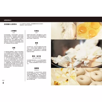 書的導言部分就先來一記開門見山,從甜甜圈的基本分類、主原料,到製作流程與器材設備,一步步打底,讓你不只是會吃,還能搞懂「甜甜圈到底是怎麼一回事」。對,這不只是一本讓你照著做甜甜圈的工具書,更像是一本甜甜圈的使用說明書——怎麼做、怎麼賣、怎麼包裝、怎麼陳列,全般揭露給你參考。