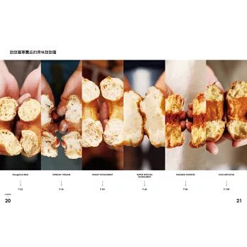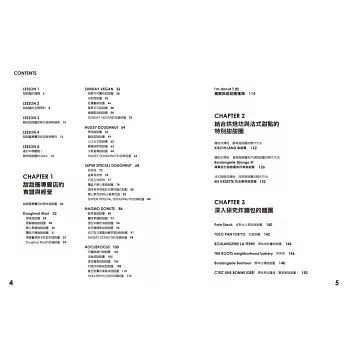 書內介紹多家甜甜圈專賣店及烘焙坊,提供各式各樣甜甜圈的食譜和製作訣竅,以及珍貴的經營經驗。提到近年來的甜甜圈熱潮,就更不能不提「I'm donut ?」。書中用了一大篇幅介紹這個品牌的麵團特色、商品多樣化,以及背後的開發邏輯,看完會發現,所謂「爆紅」可不是靠運氣,背後每一個選擇都有它的市場分析、行銷策略、以及精準的客群打擊。