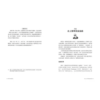 但本書的核心是收錄於其中的真實故事。故事中的主角們和你我一樣,都是決定走上簡單致富道路的人,這條強大、簡單、低成本、低風險、經過測試的財務自由之路,可是我在一片荒野中遊蕩數十年,不斷慢慢探索出來的。