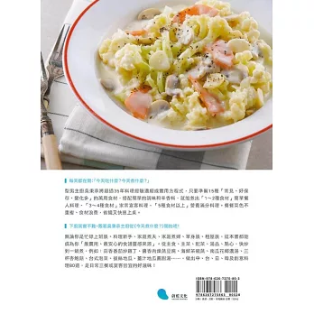 型男主廚吳秉承以35年經驗,精選15種「常見、好保存、變化多」的萬用食材,搭配簡單調味和辛香料,輕鬆煮出80道主食、主菜、配菜、湯品、點心。從蒜香番茄炒雞丁、海鮮茶碗蒸、南瓜花椰濃湯、三杯杏鮑菇、台式泡菜、拔絲地瓜、薑汁地瓜圓甜湯……,中、台、日、韓風味一次滿足,無論三餐或宴客都適用。最適合想減少採買、提升效率、冰箱整潔控與喜歡玩風格料理的你!