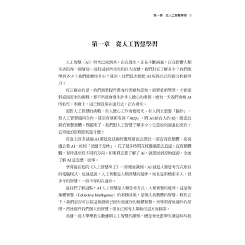 這本書的原則,不是談有哪些AI科技,或有哪些編程、或是哪些亮眼的科技產品,那是永遠學不完、談不完的;這本書是從另一個方向切入、了解「AI(人工智慧)是什麼?」,然後「我們可以從這裡學到什麼?」。最重要的是,每個人都可以學得會;而把這個觀念用在生活、工作各方面,成為人生的智慧。