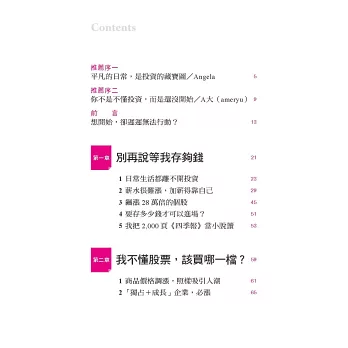 更重要的是,本書徹底打破了「進場門檻很高」的迷思。作者告訴我們,其實你只需要一筆「就算賠光也不心疼」的小額資金──大約就是一趟國內旅行的預算,就可以開始參與股市。而且,你不須整天盯盤,只要跟著企業財報的節奏走,一年檢視四次就夠了。