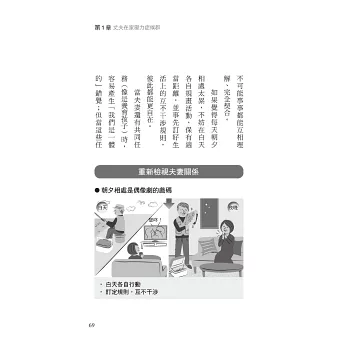 日本知名精神科醫師和田秀樹長年專注高齡者身心健康,患者高達6,000名以上。根據多年的臨床經驗,他表示,想讓老後的夫妻生活更幸福,最好的方法就是:「老公過老公的生活、老婆過老婆的生活」,彼此保有一點空間,維持「不黏不離」的關係。