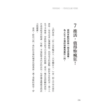 和田醫師從醫學、生理、心理、財務等角度,給出一篇篇鬆綁人生下半場的實用建議,甚至還提出「去戀愛」這種令人拍案叫絕的點子——雖然我不敢嘗試,但光是知道尺度大到這樣也可以,就已經讓人鬆了一口氣。