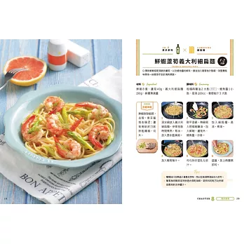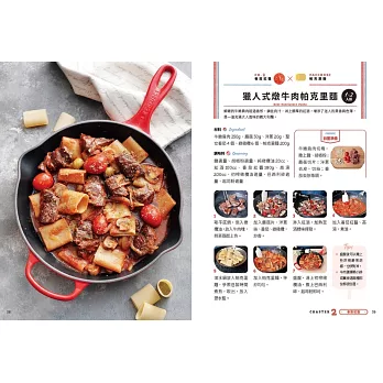食材份量、火力大小、烹煮時間、Tips提點清楚明瞭,幾乎無須刀工,第一次煮義大利就能輕鬆上手!
