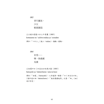 ★翻譯家陳黎和張芬齡撰寫長篇譯序並作註,引領讀者認識正岡子規的生平和創作風格。