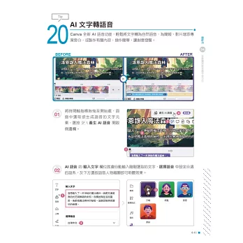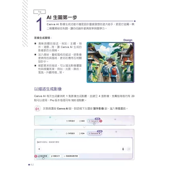 從設計與專案管理入門,進階到文字風格、影像合成、動畫剪輯與互動內容等十大主題,本書帶你全面掌握Canva × AI的創作魔法。