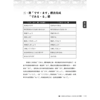 首部著作內容由淺入深、層次分明,從基本格式、標點運用到資料引用與報告撰寫,循序漸進、結構嚴謹,逐步掌握日文報告與論文的寫作要領,助益初學與初階學習。進階續作更進一步,聚焦於如何提升思辨能力、鋪陳論證,系統化梳理學術論文的內涵、脈絡與層次,範例豐富、解說清晰,重視實作與自我檢驗,使寫作之路不再晦澀難行,每位學生都能在反覆練習中累積實力,見證自己的進步。