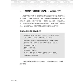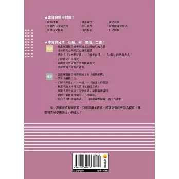 如今,這兩本書重新修訂出版為《日文論文寫作寶典 初級》、《日文論文寫作寶典 進階》,不僅是學生寫作的實用工具,也能作為教師指導的參考範本。對於正準備撰寫研究報告、畢業論文,甚至計劃出國發表的學生來說,這本書將是一本值得珍藏、隨時翻閱的良伴。
