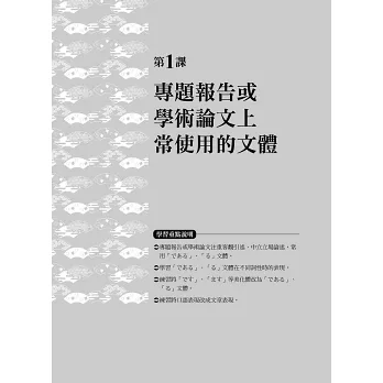 後續出版的《我的進階日文專題寫作課》則針對大學高年級及研究所課程進一步深入,從架構、論述技巧、圖表運用、資料整理到結論撰寫等,一一拆解,內容實用而完整。
