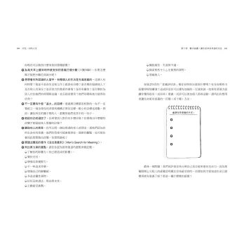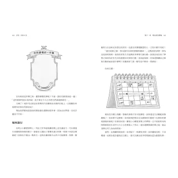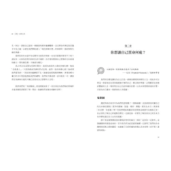 ‧接著,我們會掘開傳說中的死亡之墓:讓你了解「記住你一定會死」這句話可能對你的生命產生怎樣的影響、為什麼我們通常會避免談論死亡,以及我們可以從那些直視死亡的人身上學到什麼。此外,我們也會找出那些扼殺你的生命的習慣,以及之後可能會讓你感到遺憾的事,藉以幫助你思考要如何過下半輩子。