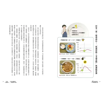 ․精準控糖的科學化 & 個人化策略:透過CGM連續血糖監測結合飲食記錄,做更精準的飲食測試,能找出專屬於你的「血糖地雷食物」,建立最適合自己的飲食模式。作者實測便利商店早餐對於連續血糖穩定度的差異,雞肉飯糰的血糖飆升幅度遠高於烤雞三明治。飯糰多以碳水化合物為主,蛋白質比例偏低,建議另外搭配無糖豆漿、茶葉蛋、生菜沙拉,以補充蛋白質與膳食纖維,降低血糖波動風險。