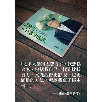 太多人活得太費力,我想為大家、包括我自己,找到比較省力、又能活得更舒服、也更滿足的方法。所以我寫了這本書。 ──蔡康永